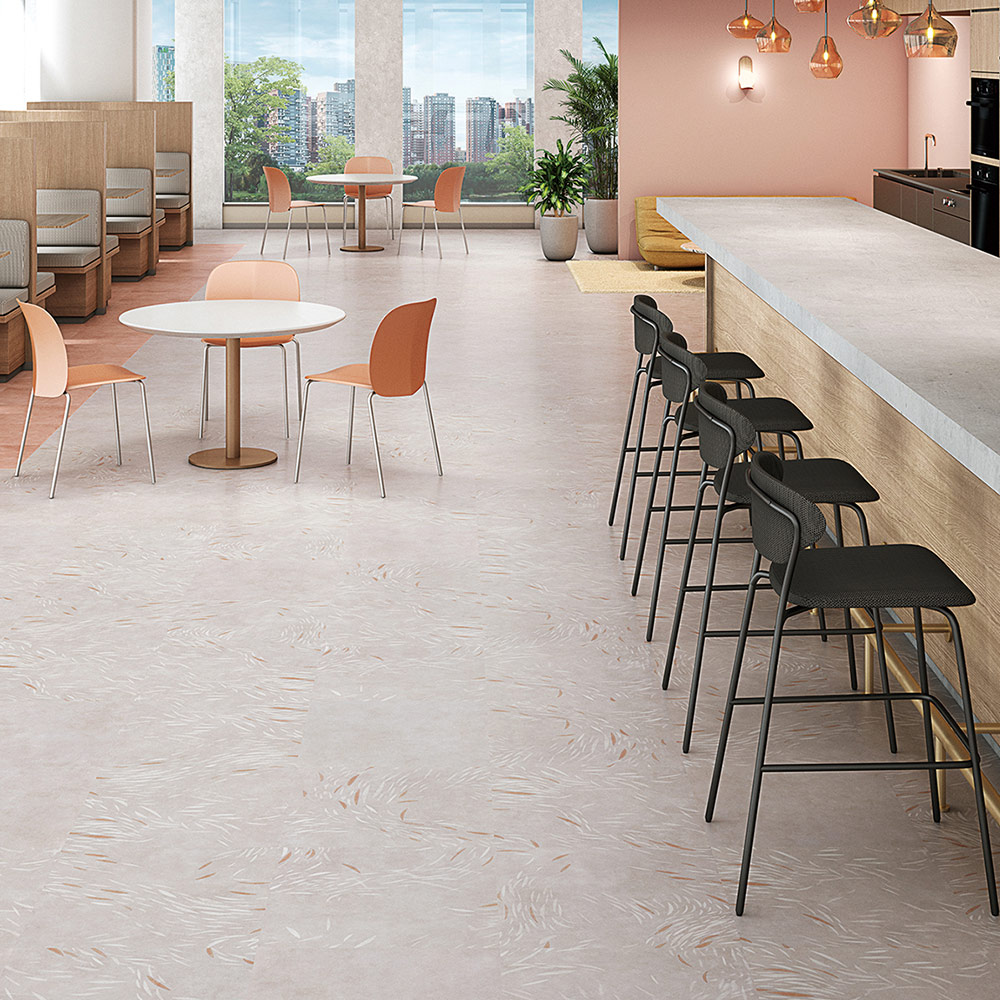 二重床(フリーアクセスフロア)やモルタル下地に置敷きできるワックスメンテナンス不要のビニル床タイル。
