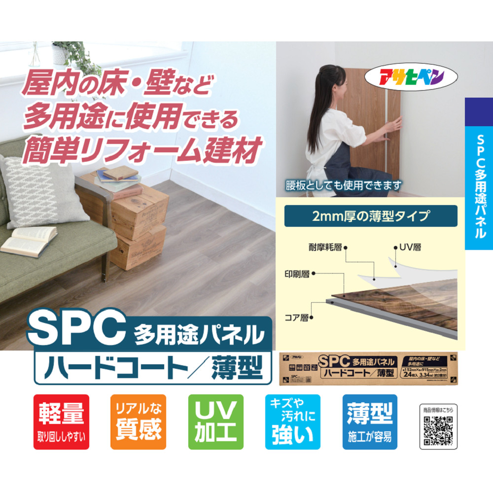 カタログ&カテゴリ | ●カタログ:『SPC多用途パネル』(メーカーWEBサイト) ●製品紹介動画:『SPC多目的パネルの商品紹介と使い方』(外部サイト) |