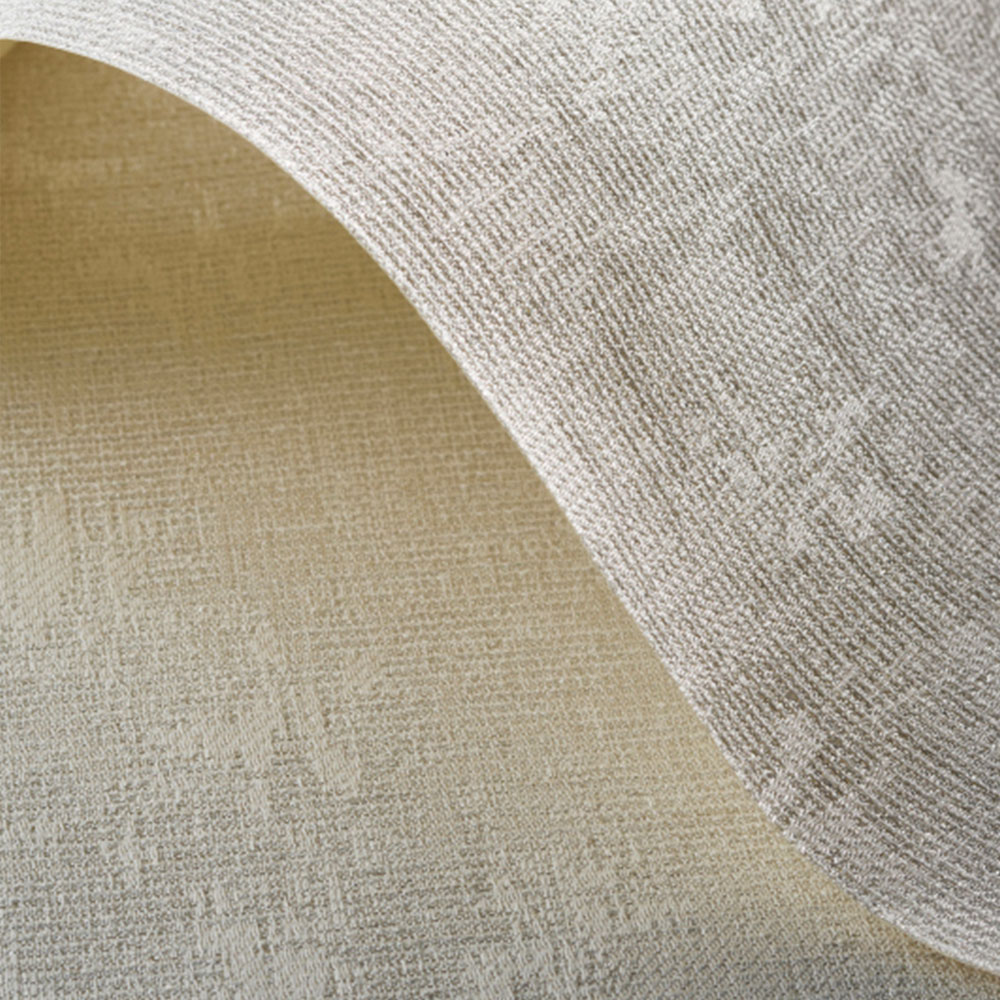 撥水効果により繊維への水分の吸収を抑えます。 施工時のカールや収縮が少なく端部もほつれにくいため、一般的な織物壁紙と比較して取り扱いしやすい壁紙です。