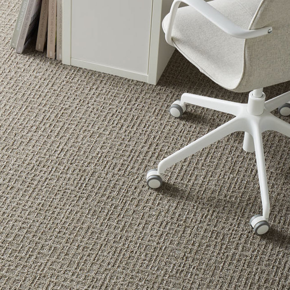 | 素材 | ●材質区分:カーペットタイル(テクスチャードループパイル) ●パイル:原着ナイロンF100% ●バッキング:特殊PVC+ガラス不織布(軽量化バッキング) |
