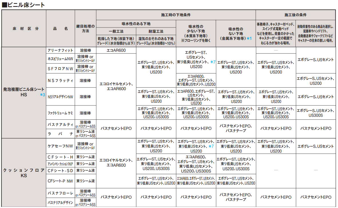工 法 | ![]() ●壁際等、シート端部はバスナシールSSで仕上げて下さい。シール代は別途料金です。 ●既存ユニットバス(樹脂)の床に本製品を施工する場合、既存床の目地の幅が10㎜以上もしくは深さが1㎜以上の際に目地埋めが必要となります。 |
